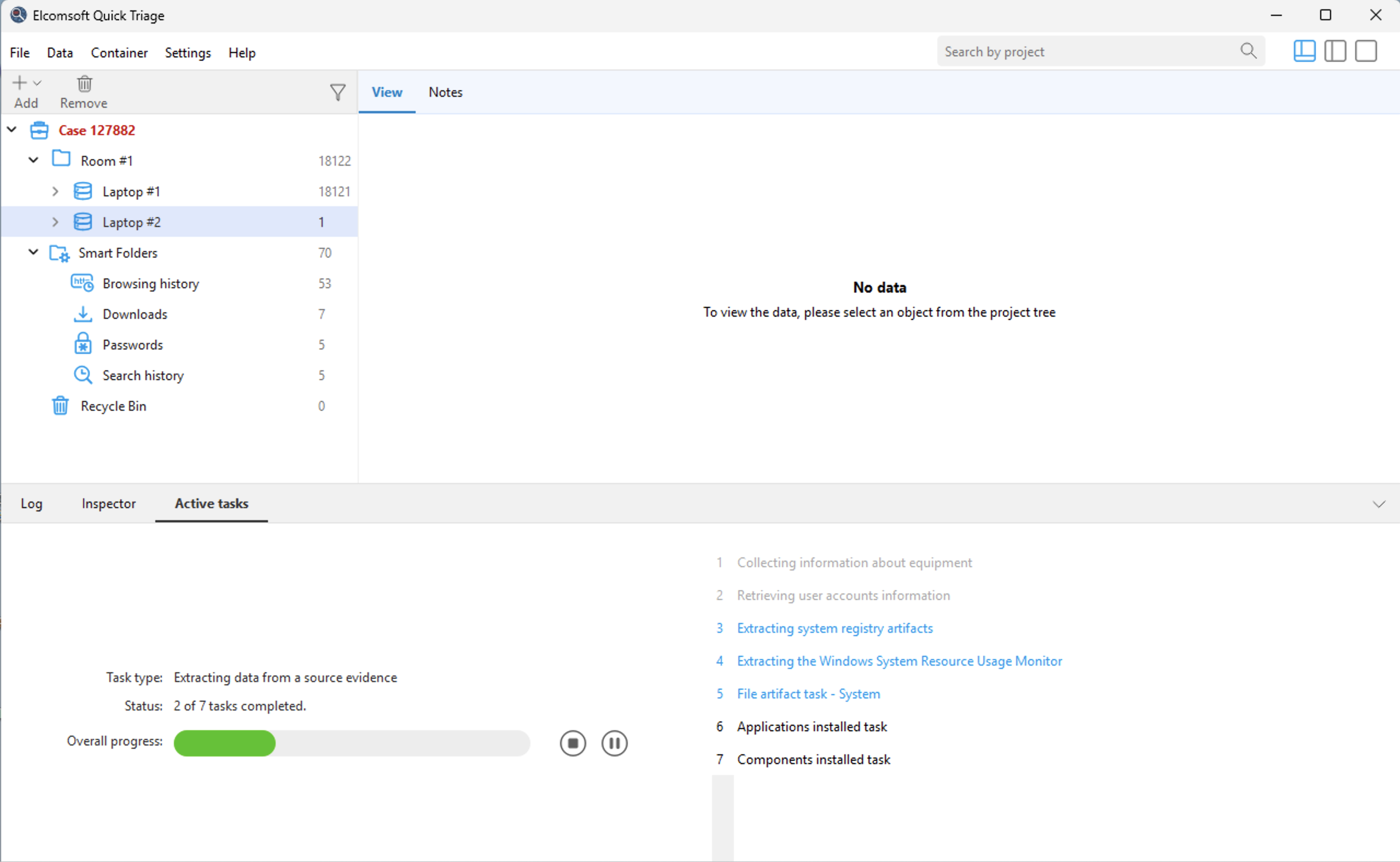 Elcomsoft Quick Triage is a tool designed to rapidly extract and analyze the most important evidence from a target computer or disk. It is equally effective during on-site operations and in laboratory environments, helping investigators make informed decisions at the earliest stages of an investigation.